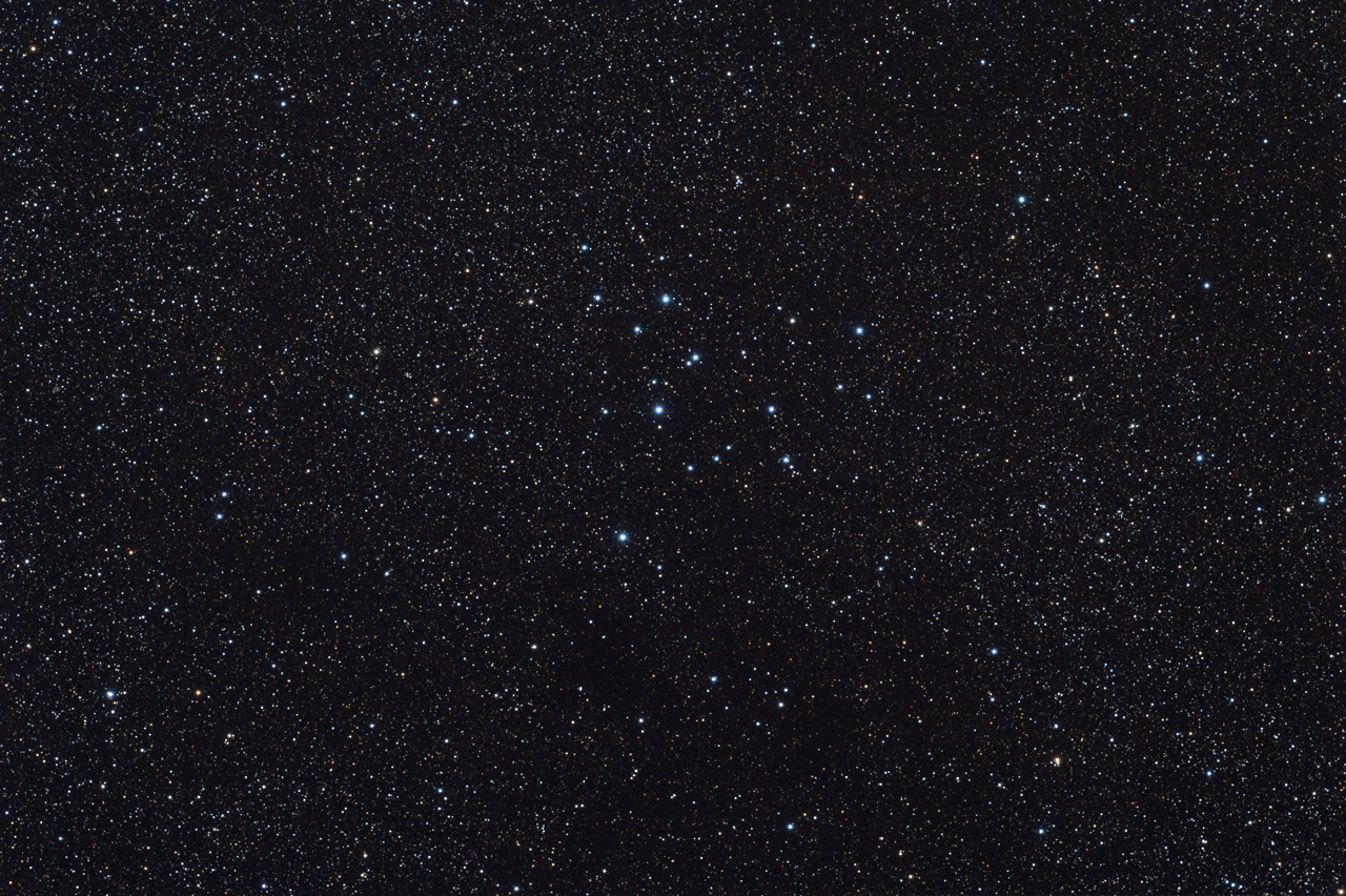 Der offene Sternhaufen M 39 im Sternbild Schwan enthält etwa 30 Sterne und liegt in etwa 800 Lichjahren Entfernung zur Erde. Dadurch, dass der Sternhaufen im Sternbild Schwan - und somit mitten in der Milchstraße - liegt, sind neben dem eigentlichen Haufen eine Fülle von Hintergrundsternen auf dem Bild zu sehen. Desweiteren sind einige schwache Dunkelwolken im Bild erkennbar. Dunkelwolken sind Bereiche in der Milchstraße, in denen der interstellare Staub so dicht ist, dass er den Blick auf die dahinter liegenden Sterne verdeckt. Dieses Phänomen ist in einigen Regionen so stark, dass fast gar keine Sterne mehr zu sehen sind und diese Bereiche wie dunkle Wolken aus dem Sternenmeer der Milchstraße herausstechen. Die hier zu sehenden Dunkelwolken (z.B. zentral unterhalb des Sternhaufens) sind jedoch nicht sehr dicht und es sind noch einige Sterne durch sie hindurch sichtbar.